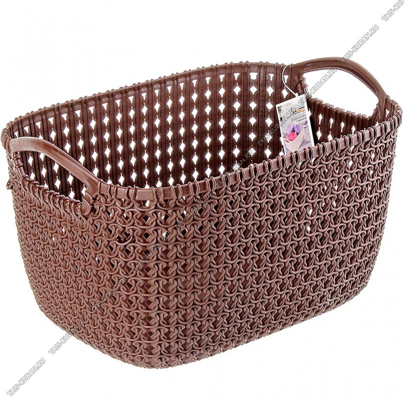 Корзинка "Вязаный узор" овал, коричн 8,0л (29,5х17 h21см) с ручк (24)