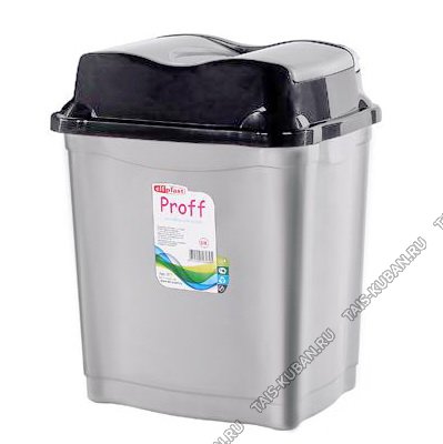 Ведро д/мусора, крышк "створки" кач-ся 2л "Proff" сер/черн,прям (15х13 h20см) фиксат.пакета (36)
