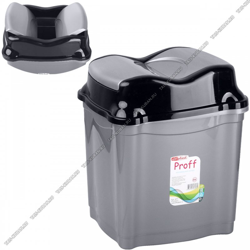 Ведро д/мусора "Проф" с кач.крыш."створка" 9л сер/черн (25х20 h32,5см) (20)