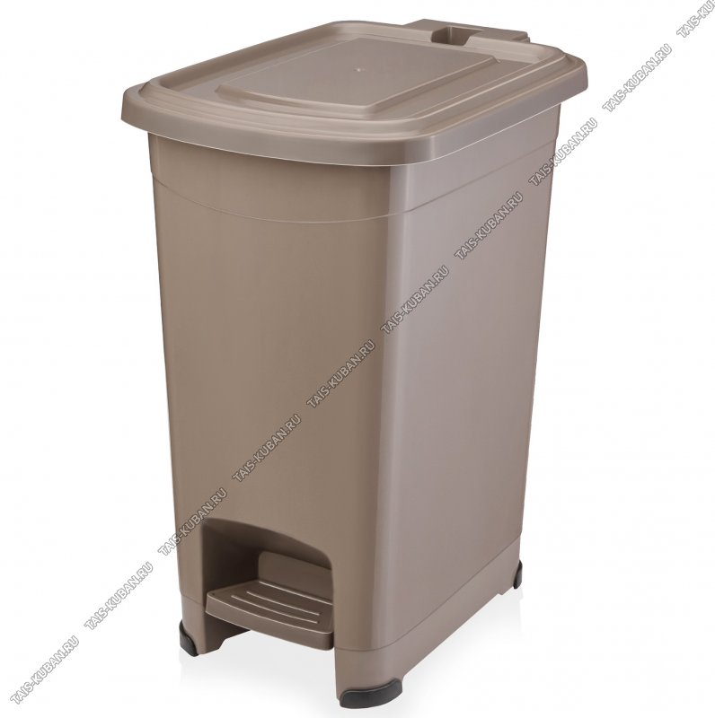 Ведро д/мусора "Слим" с педалью, прямоуголный,серо-коричневый 10л (21х28 h35см) с крышкой,(8)