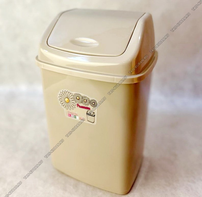 Ведро д/мусора с кач.крыш Ведро д/мусора с кач.крыш "трапеция" 10л "Ромашка" беж/корич.(23,5х19 h36см) (18)