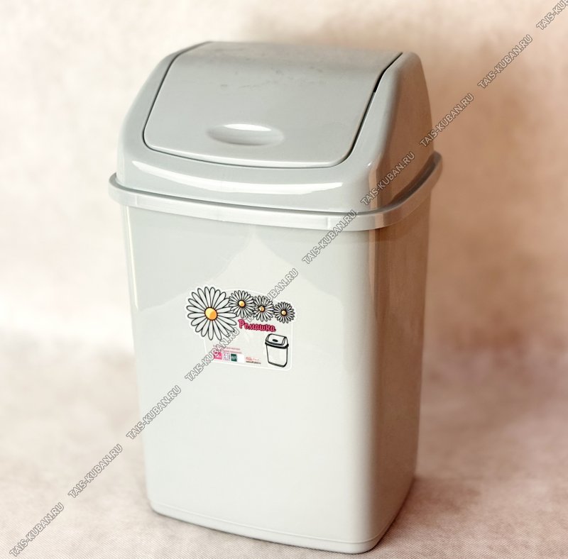 Ведро д/мусора с кач.крыш "трапеция" 10л "Ромашка" серый (23,5х19 h36см) (18)