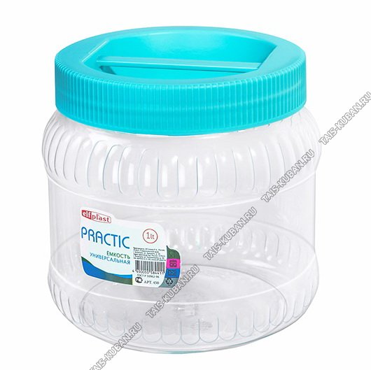 Банка "Practic" 1л винт.крыш.с руч микс,кругл.(d10 h12см) ПЭТ (12)