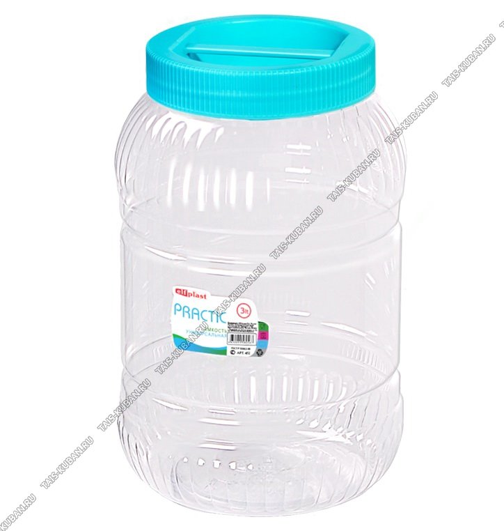 Банка "Practic" 3л винт.крыш.с руч микс,кругл.(d10 h23см) ПЭТ (8)