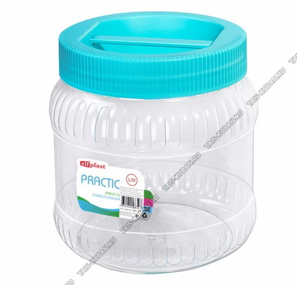 Банка "Practic" 1,5л винт.крыш.с руч микс,кругл.(d10 h15см) ПЭТ (12)