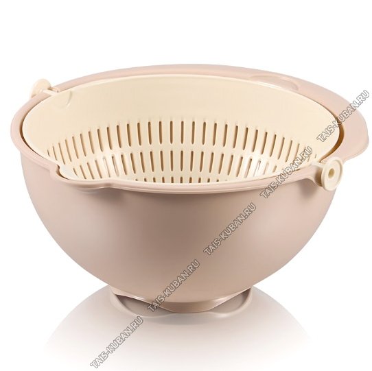 Дуршлаг с миской д/слива, беж/капучино (28х26, h12,5см) дуршлаг.вращ-ся (12)