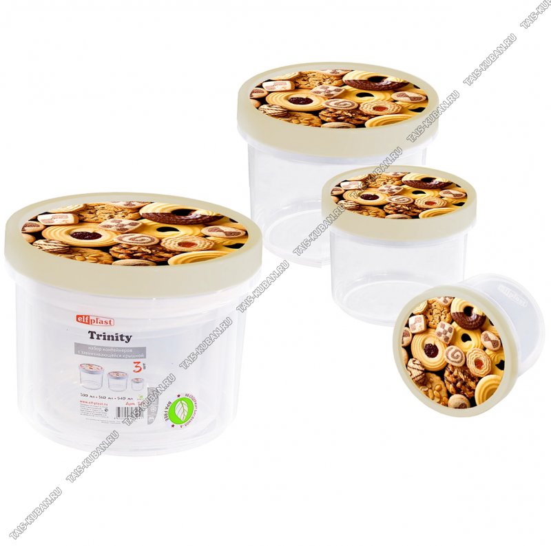 Контейнер "Печенье" Н-р 3шт 1,3/ 0,56/ 0,94л винтов.кремов. крышка (36)