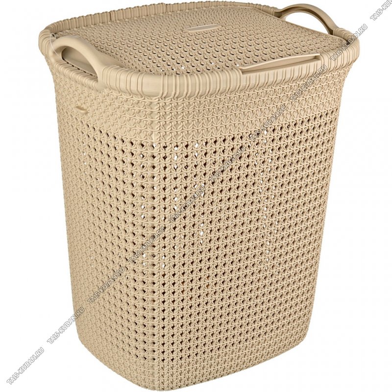 Корзина для белья 55л "Вязаный узор" бежевый (5)