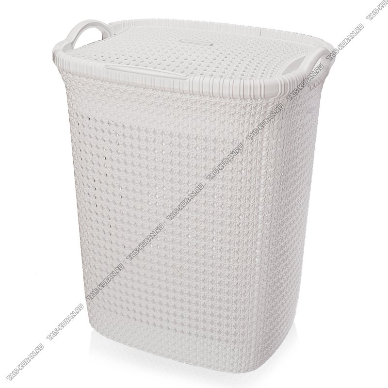 Корзина для белья 55л "Вязаный узор" белый (5)