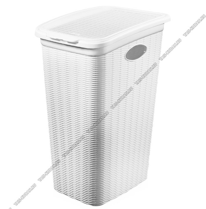 Корзина д/белья 36л с крыш. "Eleganсe/Ротанг" белый,прям.(40х29 h55см) выруб.руч (6)