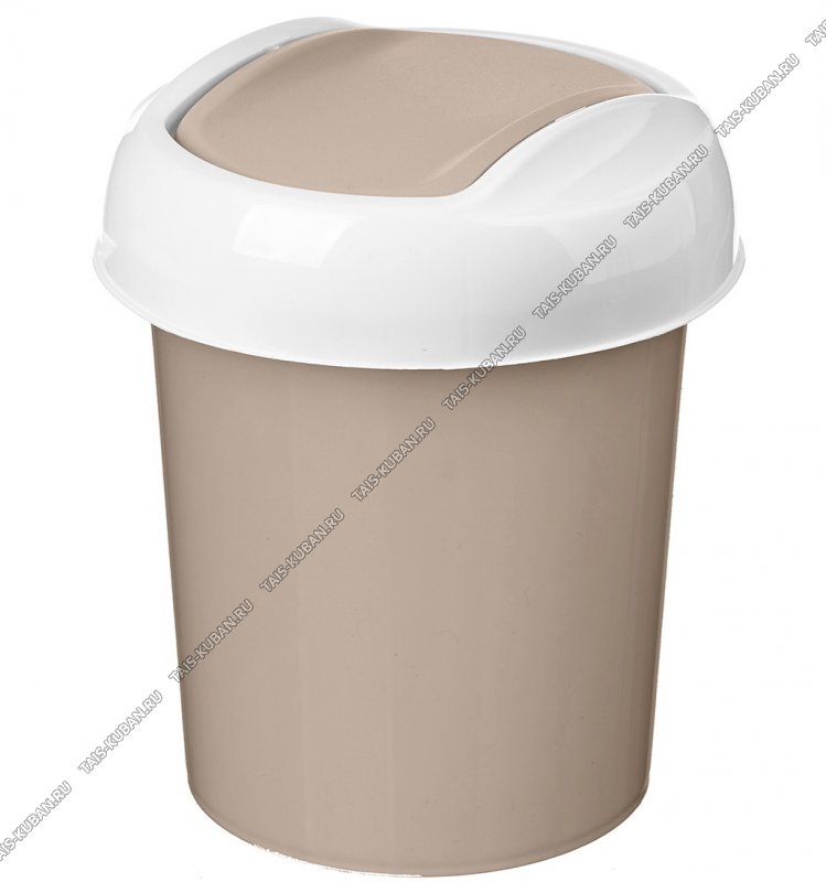 Ведро д/мусора настол 1л крышк "прямая" кач-ся,бежев,кругл (d13 h15см) (30)