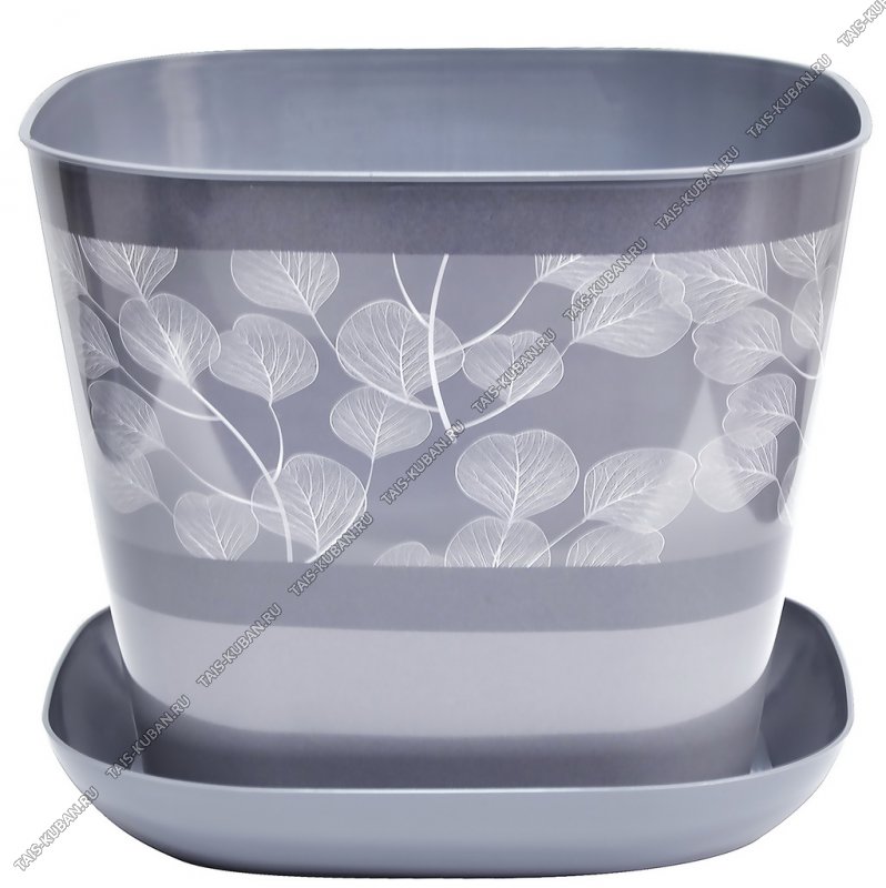 Кашпо "Листопад" серый 7,3л квадр 23х23 h20см,с поддон (11)
