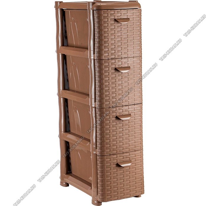 Комод 4-х секц "Ротанг" узкий, бежев (48х25 h96см) (1)