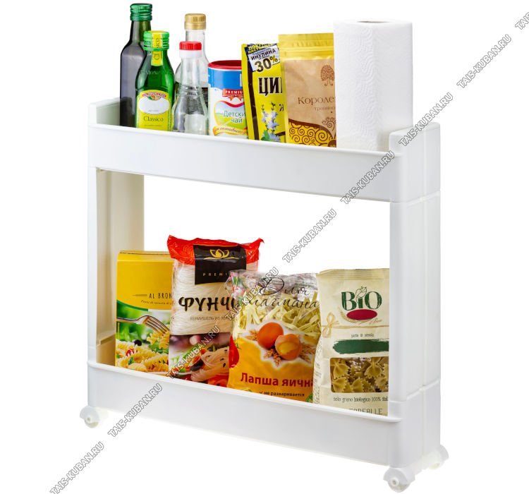 Этажерка 2-х яр (50х14 h45см) узкая,на колес,прямоуг, белый (6)