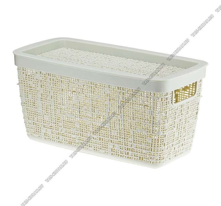 Корзина "Рогожка" бел.ротанг,с крышк,прям 4,0л (28х14 h14см) выруб.руч.(12)