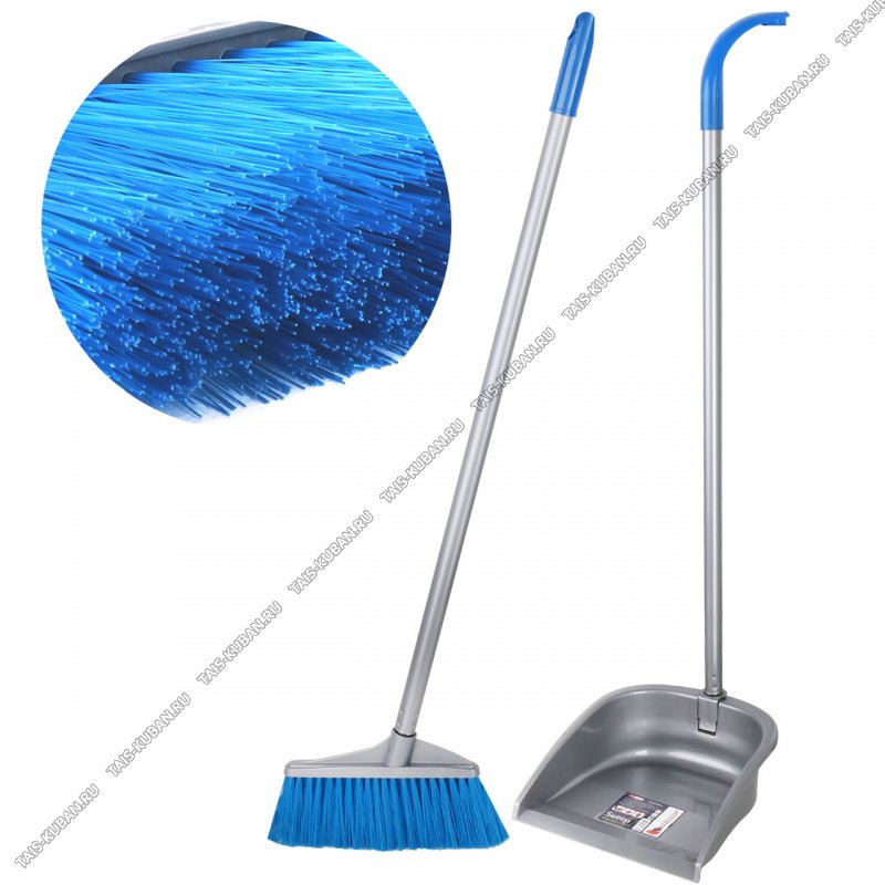Набор Совок 24х22см +Щётка L24см,ворс h8см,складн.вертикал.руч.h72см,сер/син "Sweep" Эльф (16)