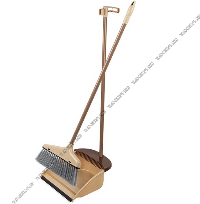 Набор Совок мягк.кром 26х24см с зубч.наклад.д/очистки +Щётка L23,5см,ворс h7см,вертикал.руч.h67см,беж/коричн (12)
