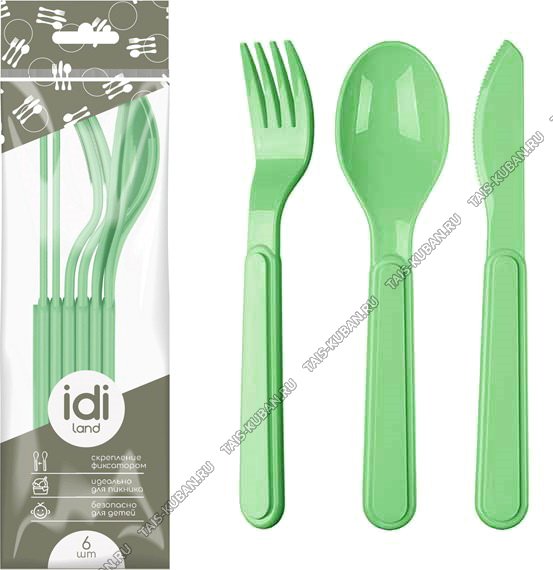 Столовые приборы н-р 6шт салатов, нож, ложка, вилка, защелк. друг в друга, уп.пакет (20)