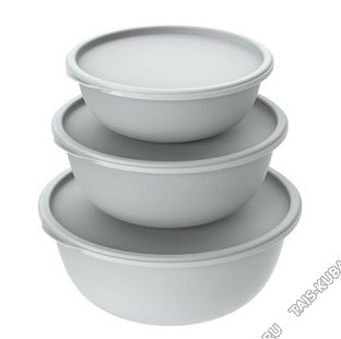 Миска с крышк, Н-Р 3шт Миска с крышк, Н-Р 3шт "Шарм" серый 1,3+2,3+3,7л (16)