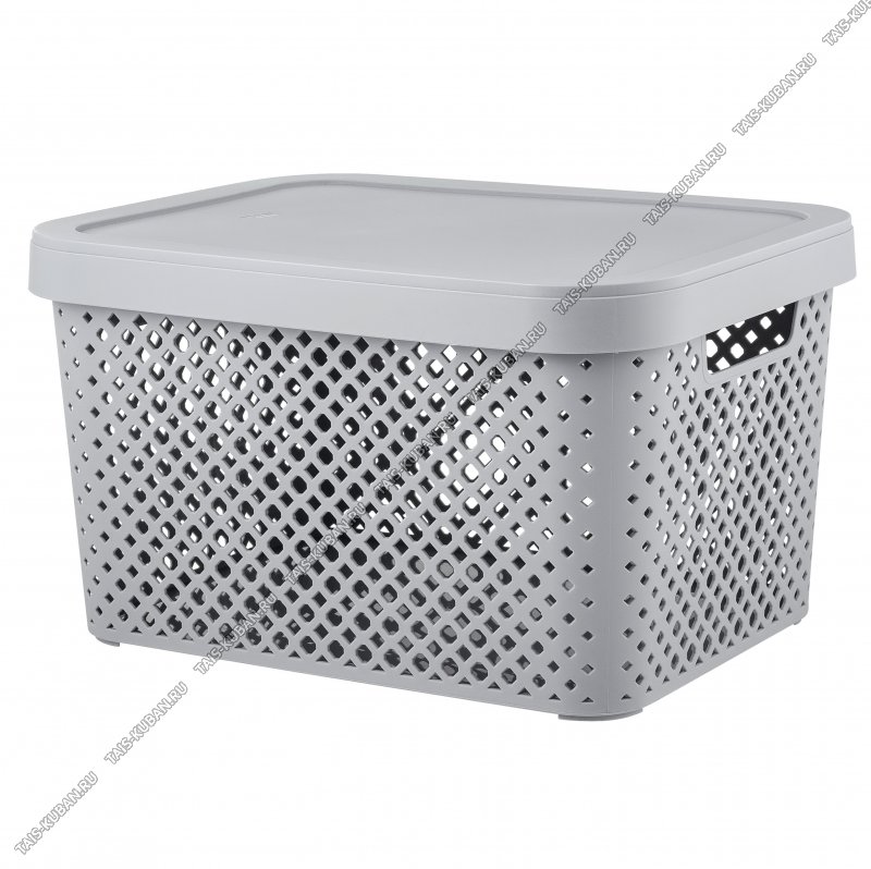 Корзина "Stockholm" серый,с крышк 15л прям (36х27 h20см) выруб.руч.(6)