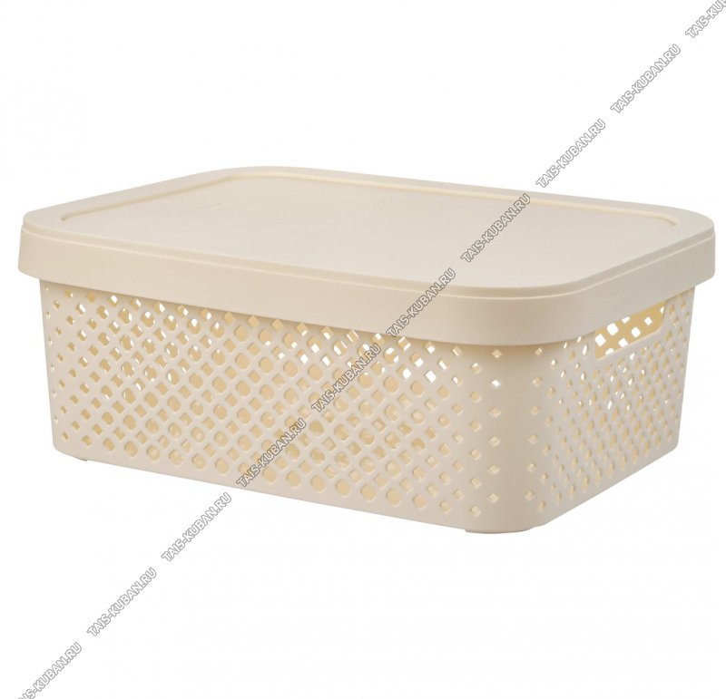 Корзина "Stockholm" молоч,с крышк 10л прям (36х27 h14см) выруб.руч.(7)
