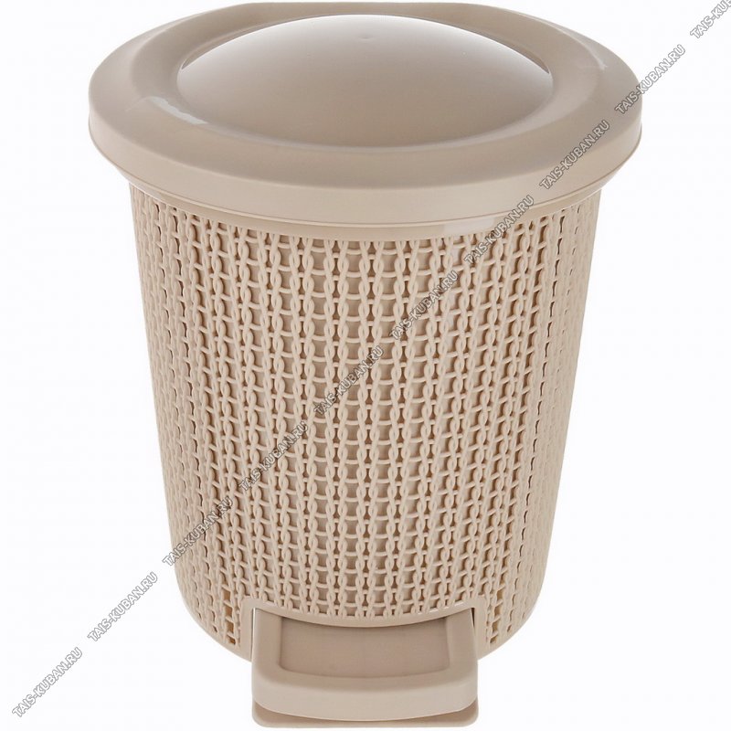 Ведро д/мусора 6л "Плетение" кофе,с педал, круг (d24,5 h27см) внутр.съем.ведро (2)