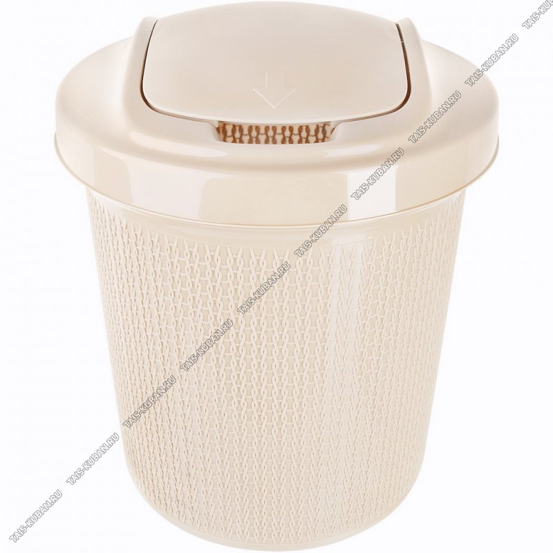 Ведро д/мусора с кач.крыш "овал" 12л "Плетение" сливочн,круг (d28 h33см) (8)