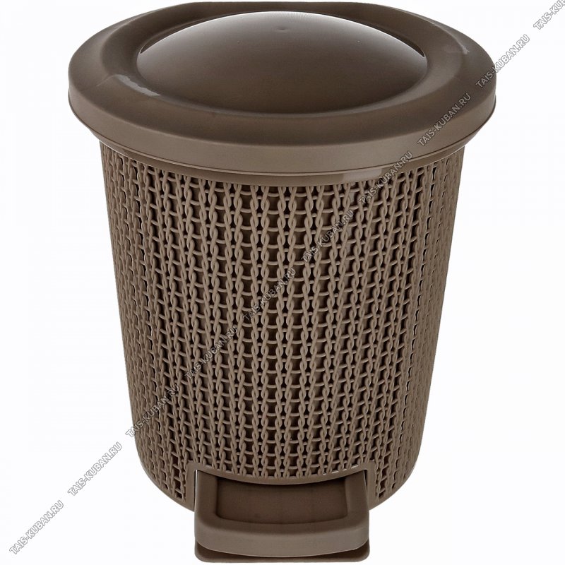 Ведро д/мусора 6л "Плетение" темн.шоколад, с педал, круг (d24,5 h27см) внутр.съем.ведро (2)