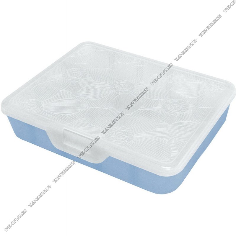 Органайзер д/мелочей 3-15яч.(съем.перегород),прозр.крыш/бел.(19х16 h4,5см), фактурн.цветы на крыш.(32)