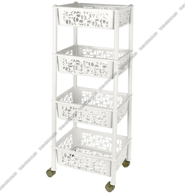 Этажерка "Prima" белый 4-х ярус,на колес,д/кухни,ванной (37х29 h93см,глуб.лотка 10см) полки ажурные (8)