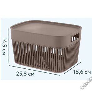 Корзинка "Keeplex" беж.топаз матов,с крыш 5,0л прям (25,5х18,5 h15см) вырубн.руч (8)
