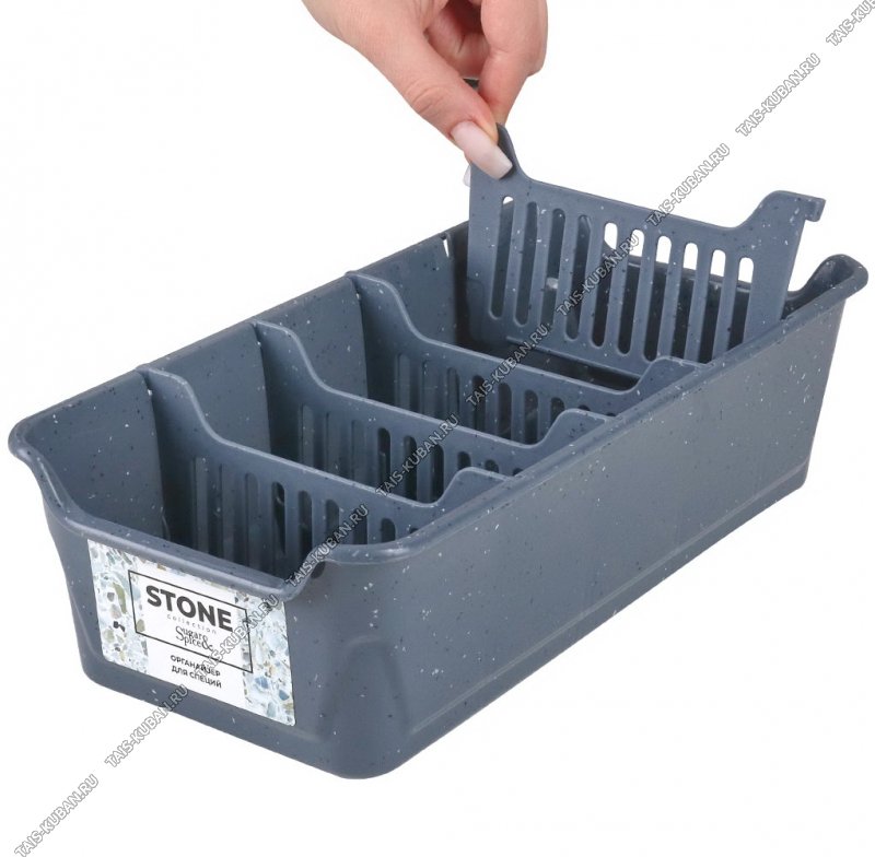 Органайзер д/специй 5-х секц. графит с бел.крап (280х143 h78мм) (10)