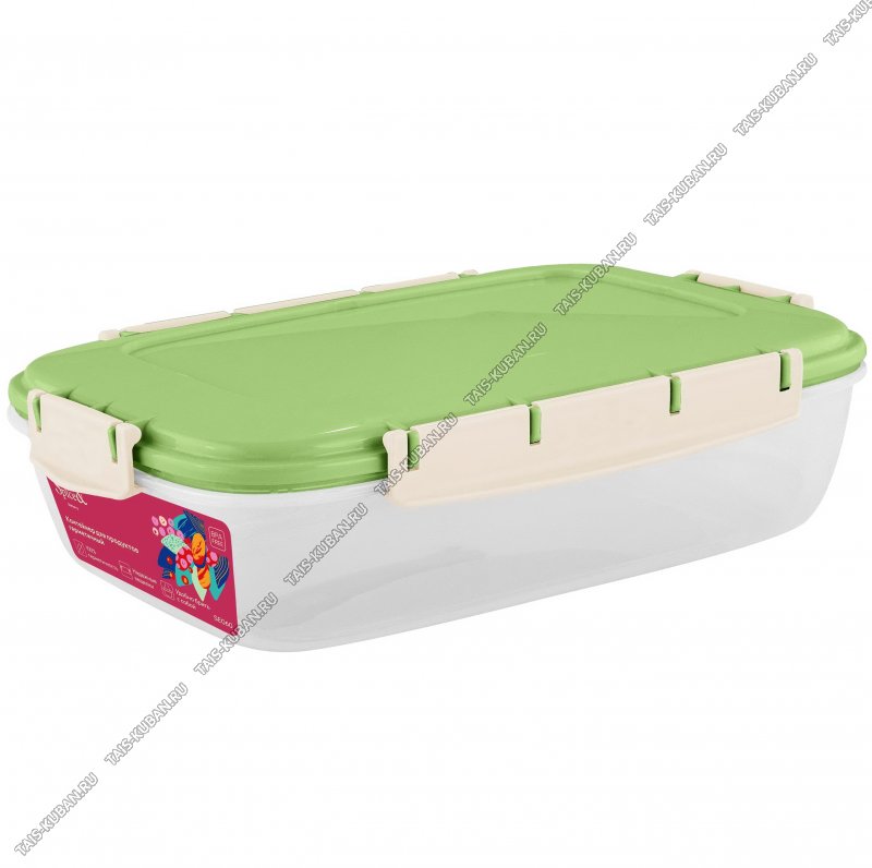 Контейнер "Barberry" фисташка, прям 1,3л гермет.крыш,на 4защел (24х17 h7см) (12)