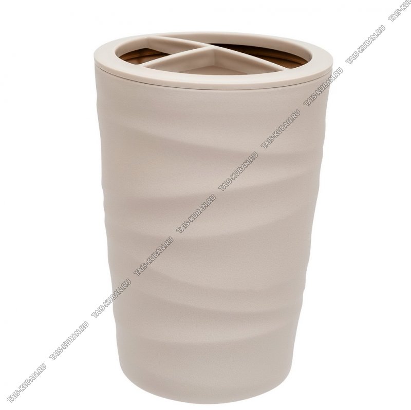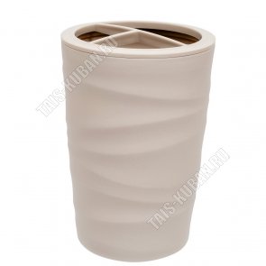"Wave" бежевый Подставка д/зубн.принадлежн 3-х секц,круг (d7,5 h14см) (24)