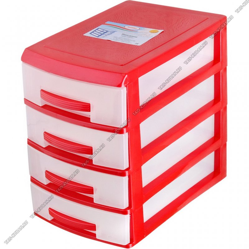 Бокс д/метизов,мелк.инструмента,красн/прозр 4-х секц,(25х18 h26см) (6)