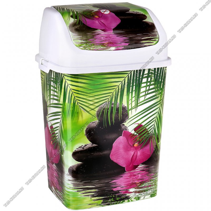 Ведро д/мусора, крышк "трапеция" кач-ся 18л "Камелия/Орхидея" бел,прям (29х23 h47см) фиксат.пакета (12)