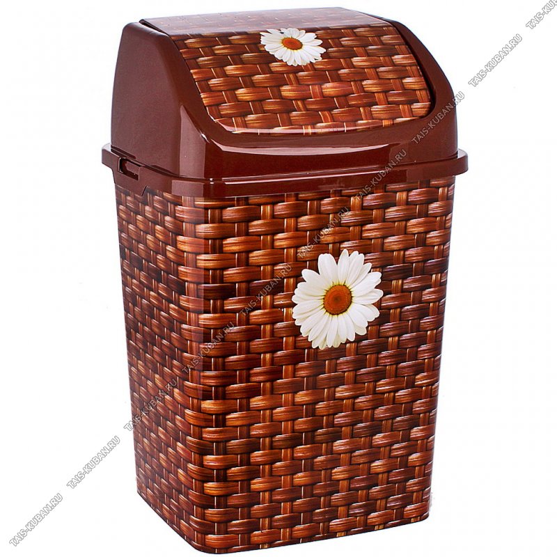 Ведро д/мусора, крышк "трапеция" кач-ся 18л "Камелия/Плетёнка" коричн,прям (29х23 h47см) фиксат.пакета (12)