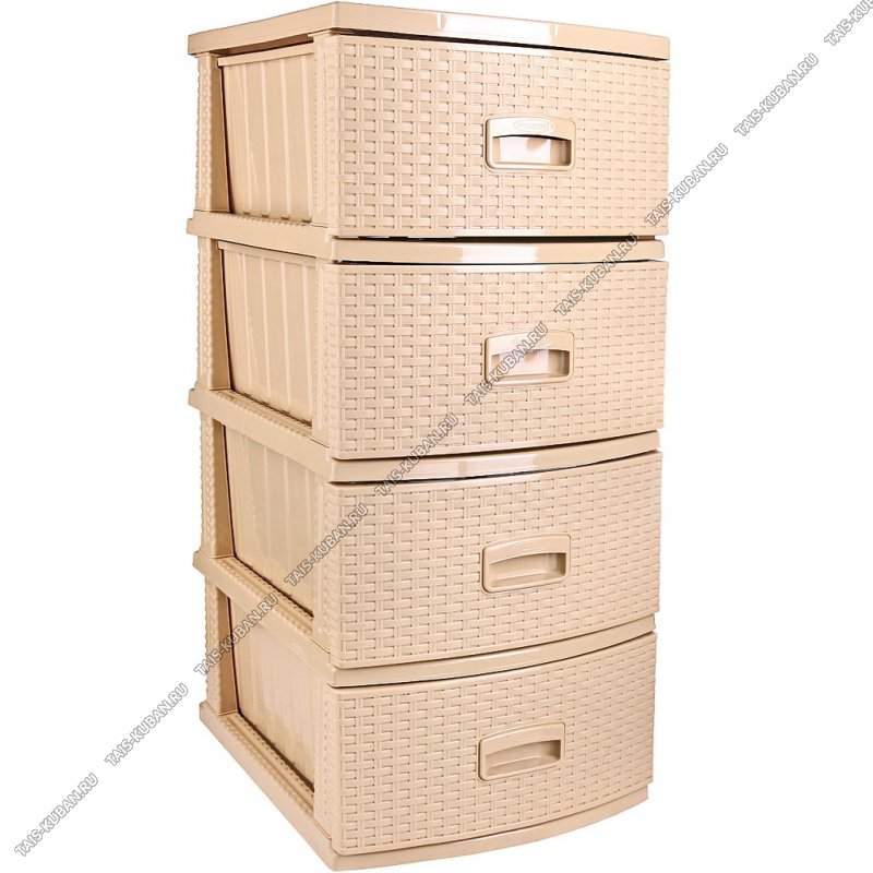 Комод 4-х секц."Ротанг" бежев (47х38 h95см) (1)