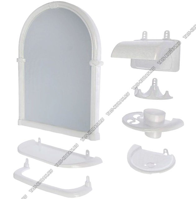 Зеркало "арка" 35х52см, белый+ полка,подстакан,подст.д/зуб.щет,д/полотенец,д/туал.бум,мыльн,4-й крюч "Олимпия" (5)