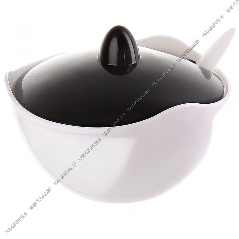 Сахарница с кр.+лож.0,42л (d13 h10см) бл/черн.(30)