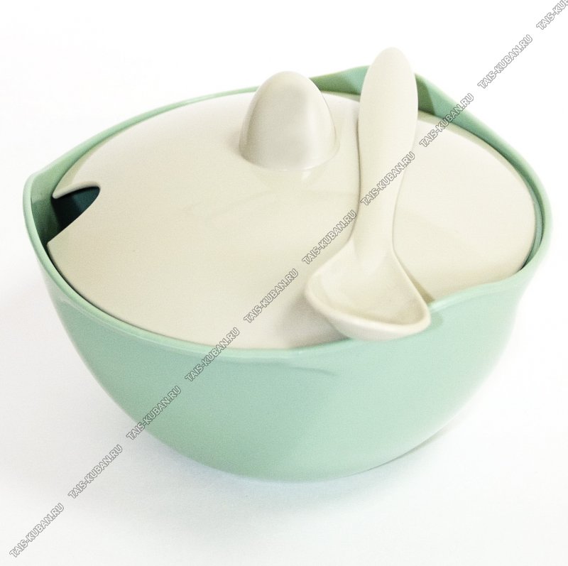 Сахарница с кр.+лож.0,42л (d13 h10см) оливковый/серо-бежев.(30)