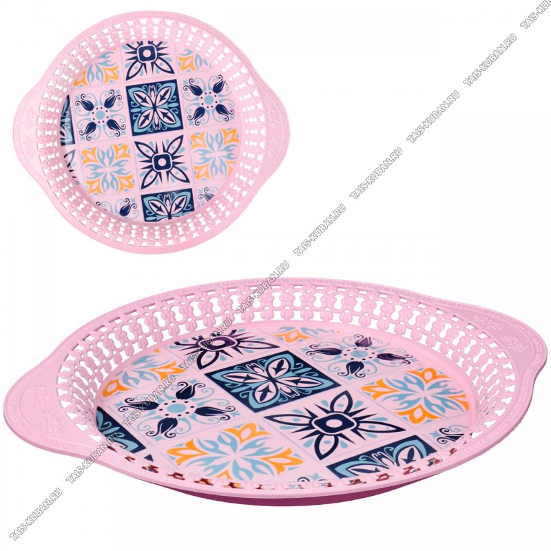 Поднос декор,с борт, круг.(d38 h3,5см) Поднос декор,с борт, круг.(d38 h3,5см) "Бутоны роз" розов (120)