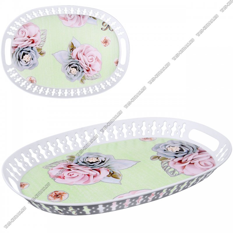 Поднос овал.(38х27,5 h3,5см) "Бутоны роз" (150)