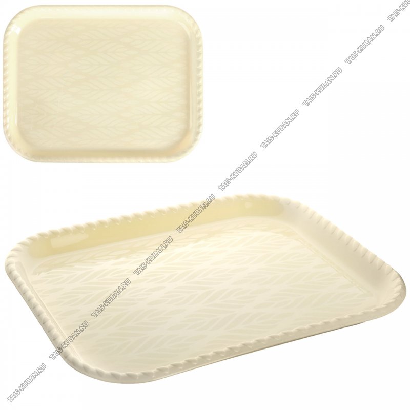 Поднос прям.(45х36 h2см) "Колос" кремов,рельеф по краю, Альт-Пл (10)