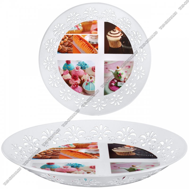 Поднос декор,круг.(d34см) "Сладкий мир" резной борт, белый (100)