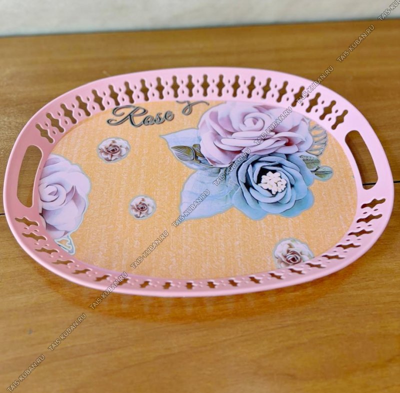 Поднос овал.(34х24 h4см) "Цветы" резной борт,вырубн.ручк,розов (200)