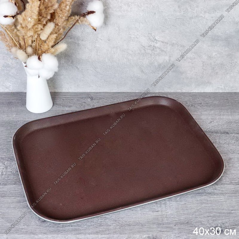 Поднос противоскольз, прямоуг.(40х30см) коричневый, раб.поверх.прорезинена (50)