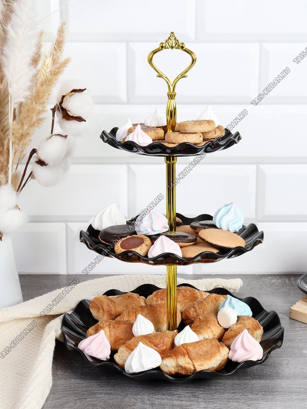 Фруктовница 3-х яр, круг (d22/18/15 h30см) "Прованс/Черный" волнист.край,золот.креплен (100)