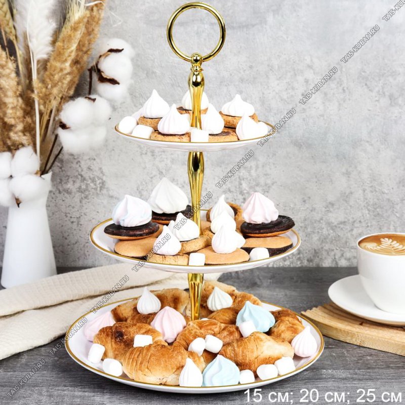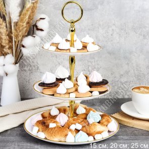 "Белое/золотой край" Фруктовница 3-х ярус d15/20/25см (65)