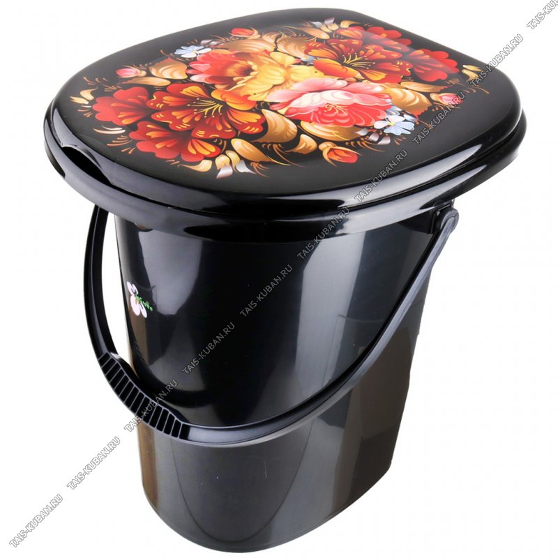 Ведро-туалет 20л нагруз.до 130кг,черный/крыш.декор "цветы" (39х35 h42см) (6)